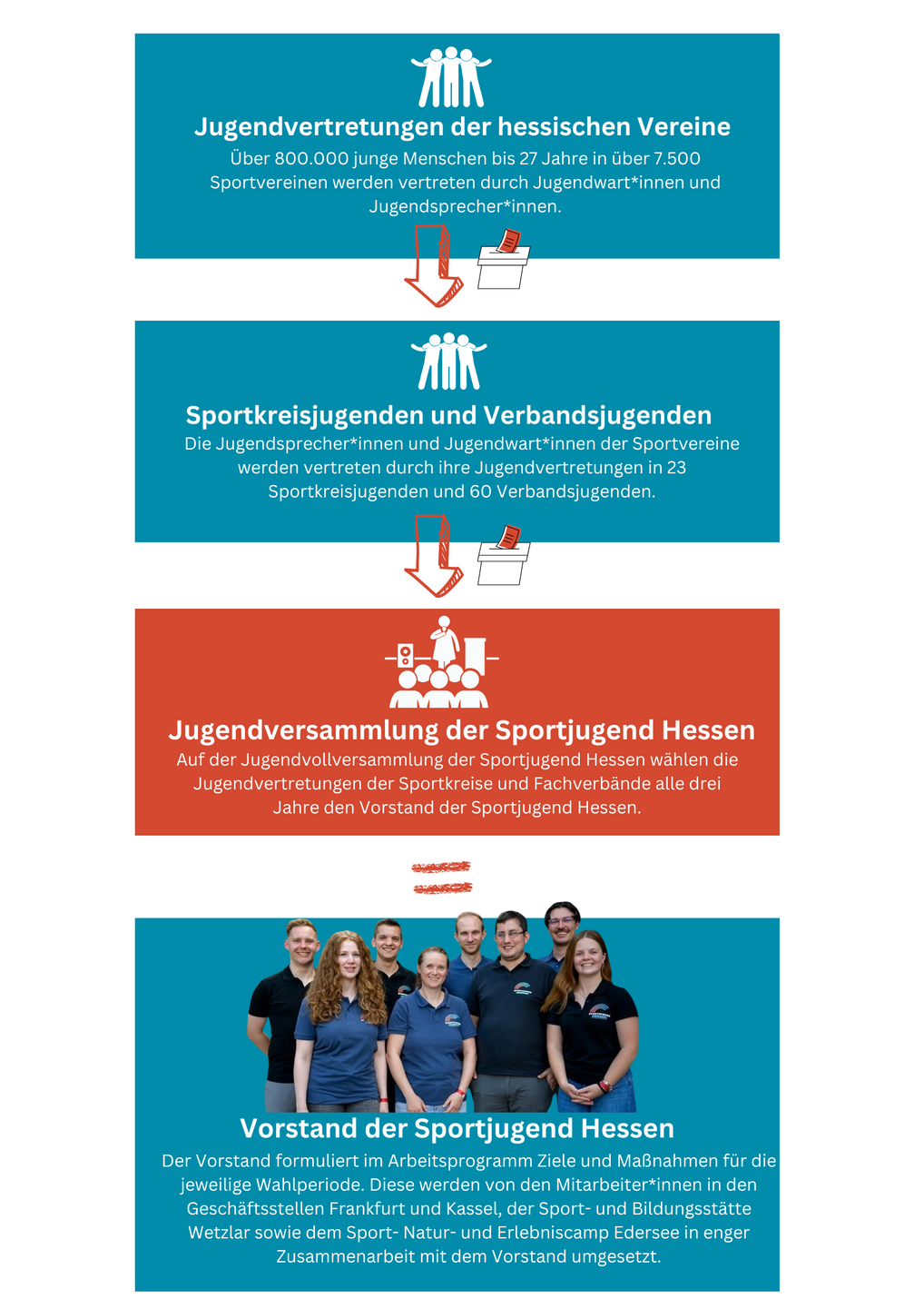 Die Mitgliedsorganisationen der Sportjugend Hessen setzen sich aus 23 Sportkreisjugenden und 60 Verbandsjugenden zusammen.
